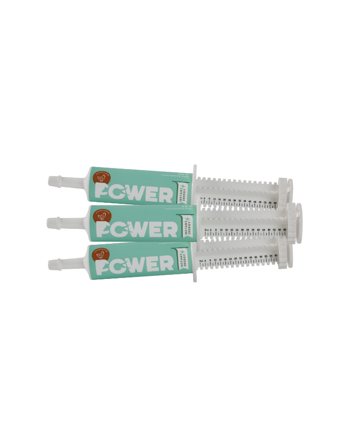 Hurtig energi før og under træning eller konkurrence. Velkommen til en ny æra af præstation og energi til agility hunde. Svenska DjurApoteket forstår vigtigheden af hurtig energi og restitution under intens træning og lange konkurrencedage. Derfor har vi omhyggeligt sammensat Power med de bedste ingredienser for at give din hund det ultimative energiboost. Power er en pasta med et højt indhold af laurinsyre - en unik fedtsyre, der hurtigt absorberes og omdannes til direkte brændstof for muskler, hjerne og indre organer. Ved at basere vores formel på protein og sort soldatflueolie har vi skabt en kraftfuld energikilde, der giver din hund energi fra fedt i stedet for kulhydrater. Giv din hund den ultimative energi! Nem dosering, der giver dig mulighed for at indstille nøjagtige milliliter til din hund. Det betyder, at du ikke behøver at spilde produkt eller ikke få effekten. Da tilskuddet er koncentreret, skal du bruge minimalt med produkt for at få maksimal effekt.